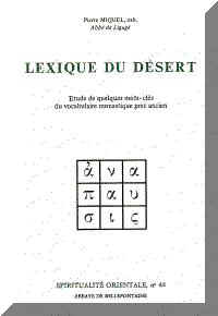 De plus, le terme grec a des harmoniques que le français ne peut rendre; aussi, devant la peine à le traduire, on se contente généralement de le transcrire : apathéia, acédia, penthos… Ce Lexique du Désert ne prétend pas être exhaustif; il s’agit d’un glossaire permettant de mieux pénétrer l’univers mental et spirituel des moines du désert.